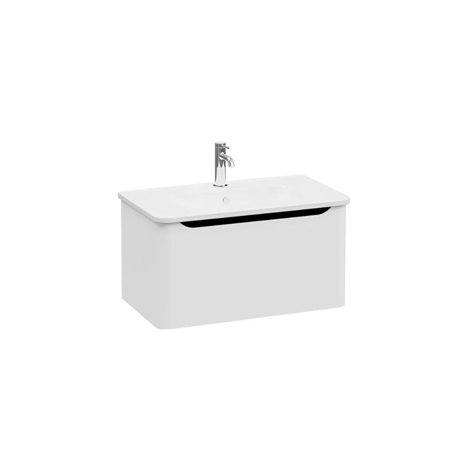 Integra Round Washbasin unit, 80 cm, with one drawer, one tap hole , Matt light grey