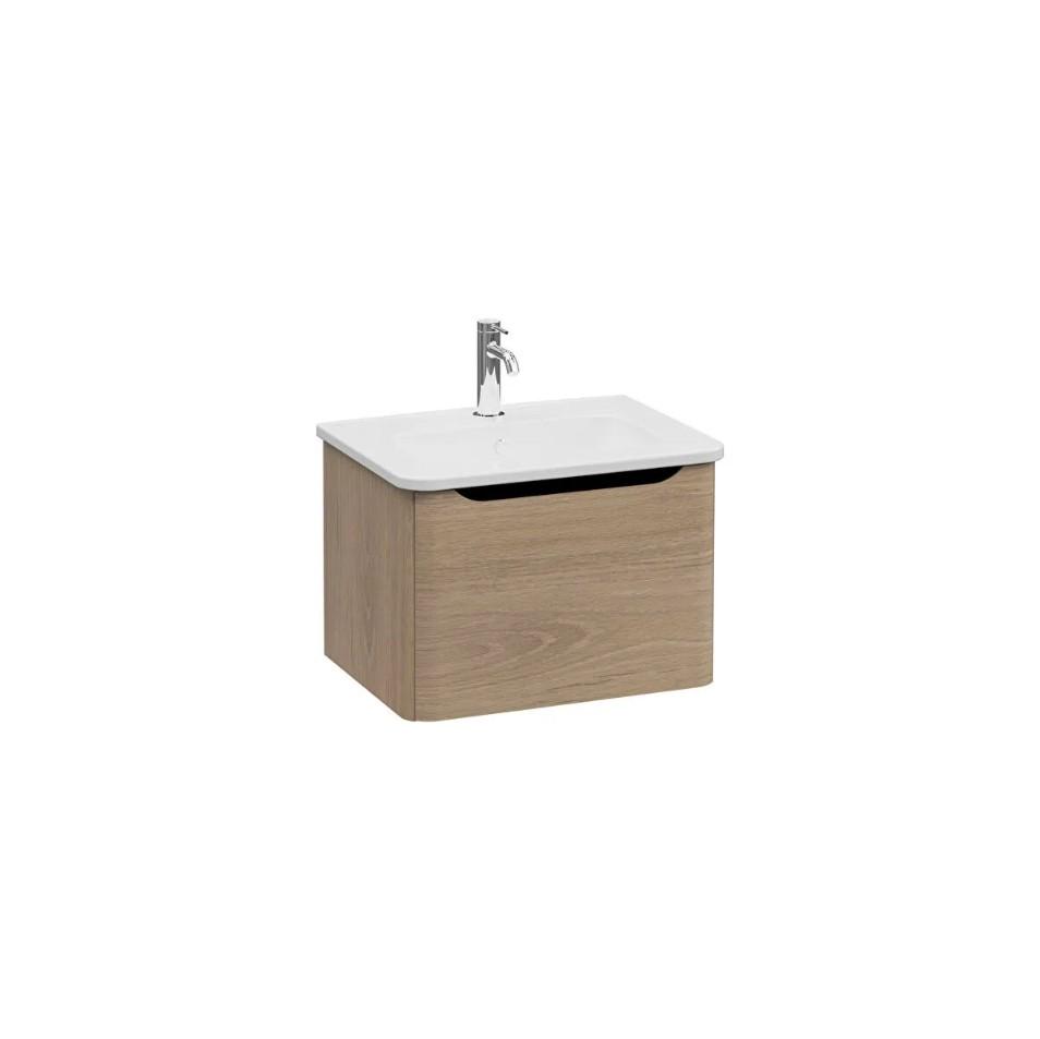 Integra Round Washbasin unit, 60 cm, with one drawer, one tap hole , Golden oak