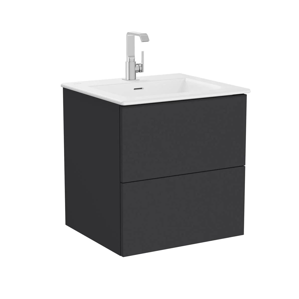 Metropole Pure Washbasin unit, 60 cm, with 2 drawers, with vanity basin Matt graphite