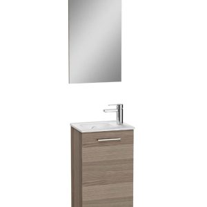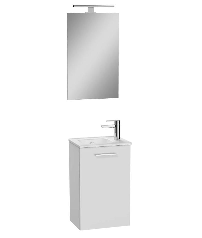 Mia Set, 40 cm, with one door, one tap hole, washbasin unit, flat mirror with lighting Cordoba, right