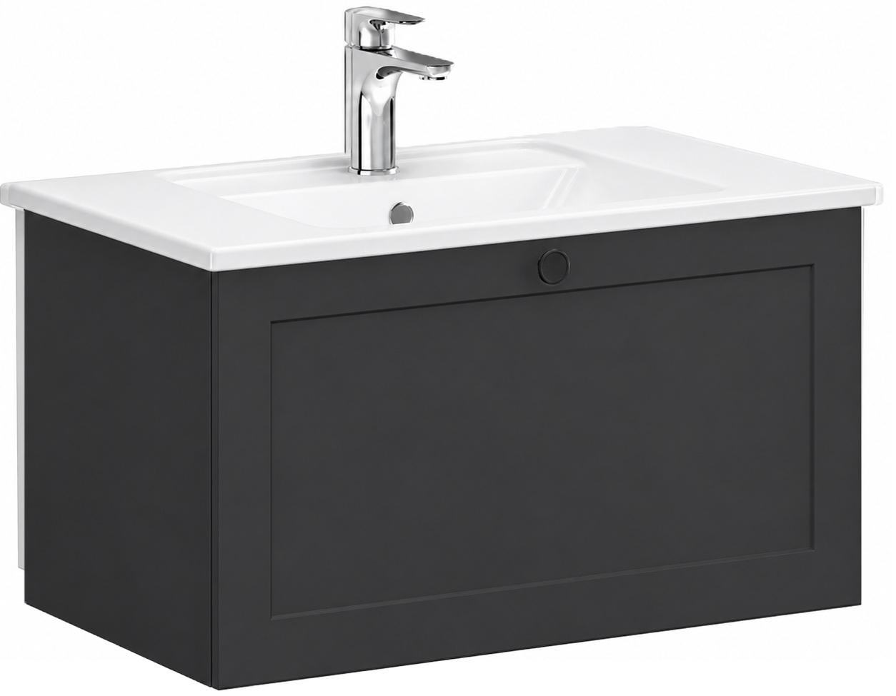 Root Classic Washbasin unit, 80 cm, with one drawer, with angular washbasin, one tap hole Matt graphite