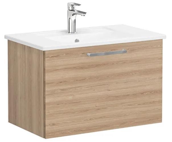 Root Washbasin Unit, with one drawer, 80 cm, natural oak, with angular washbasin