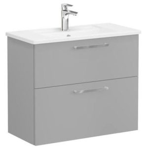Root Washbasin Unit, with two drawers, compact, 80 cm, High Gloss White, with angular washbasin