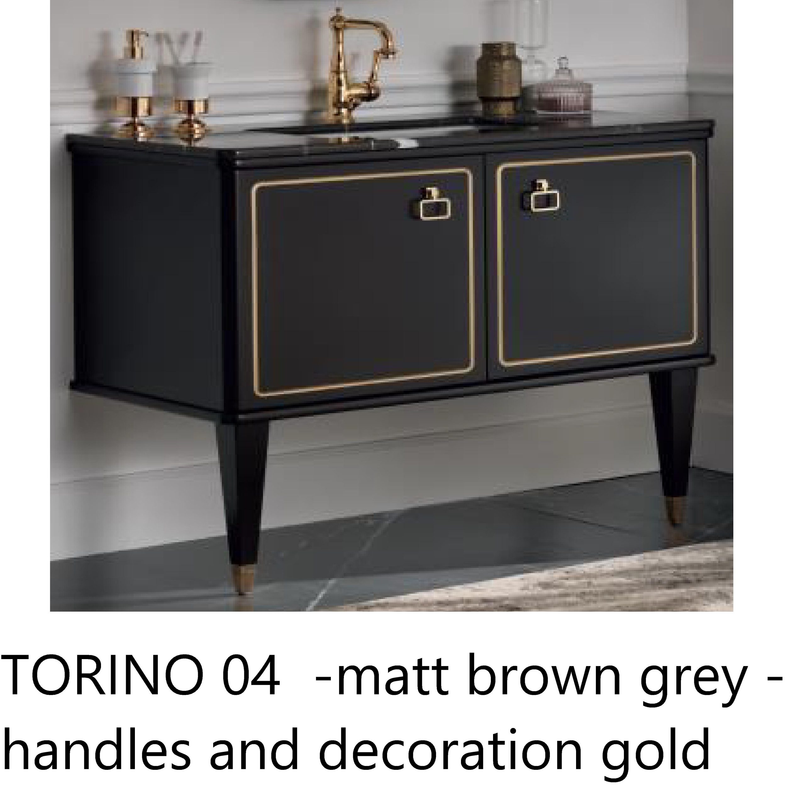TORINO 04 -W.B Unit- cm.51x100x83h with 2 doors matt brown grey, handles and decoration gold